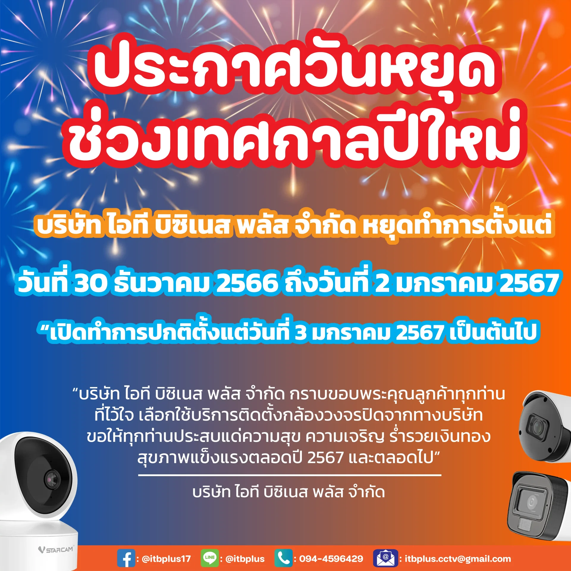 บริษัท ไอ ที บิซิเนส พลัส จำกัด แจ้งหยุด วันที่ 30 ธันวาคม 2566 - 2 มกราคม 2567