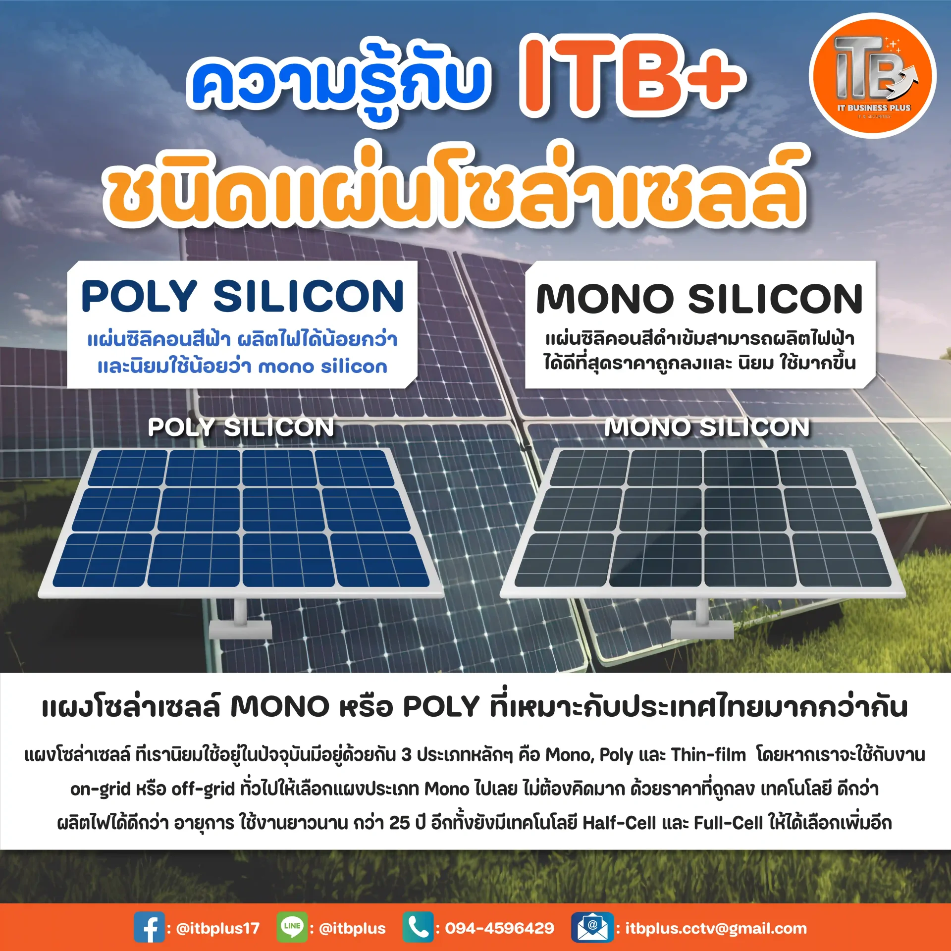 สรุปได้ว่าเมื่อเปรียบเทียบระหว่างแผงโซลาร์เซลล์แบบ Mono และ Poly จะพบว่าแผงโซลาร์เซลล์แบบ Mono เหมาะสมกับประเทศไทยมากกว่า โดยเฉพาะสำหรับมืออาชีพในงานด้านพลังงานที่ต้องการระบบที่มีความเสถียรและมีประสิทธิภาพสูง ดังนั้นเพื่อไม่ให้พลังงานหายไปโดยเปล่าประโยชน์การใช้งานระบบโซลาร์เซลล์ ควรพิจารณาใช้แผงโซลาร์เซลล์แบบ Mono ในการติดตั้งแผงโซลาร์เซลล์ของคุณในประเทศไทย