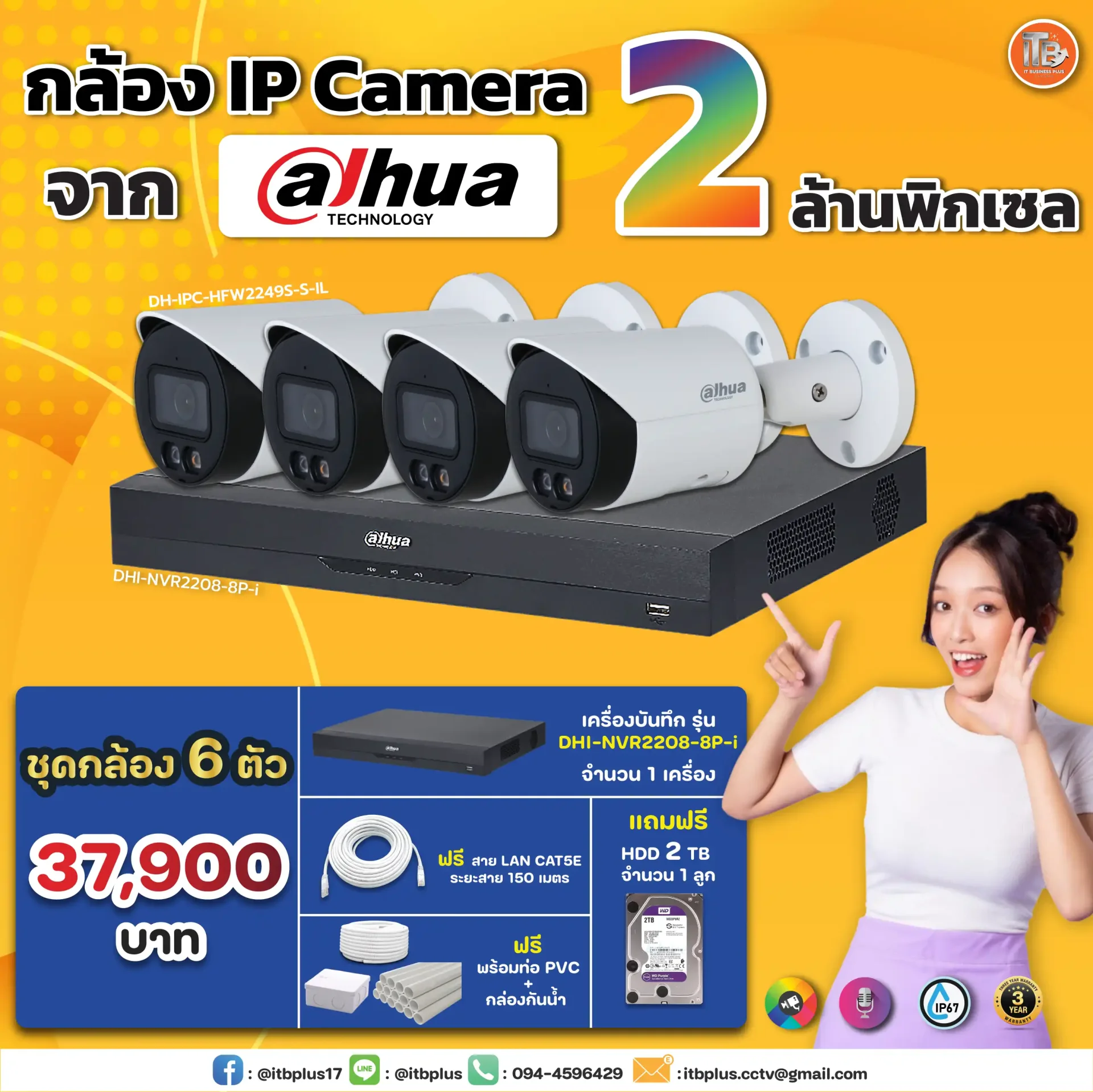 สำหรับลูกค้าที่สั่งซื้อกล้องวงจรปิด Dahua พร้อมบริการติดตั้งกับบริษัท รับส่วนลดพิเศษ ในราคาเพียง 37,900 บาท เท่านั้น