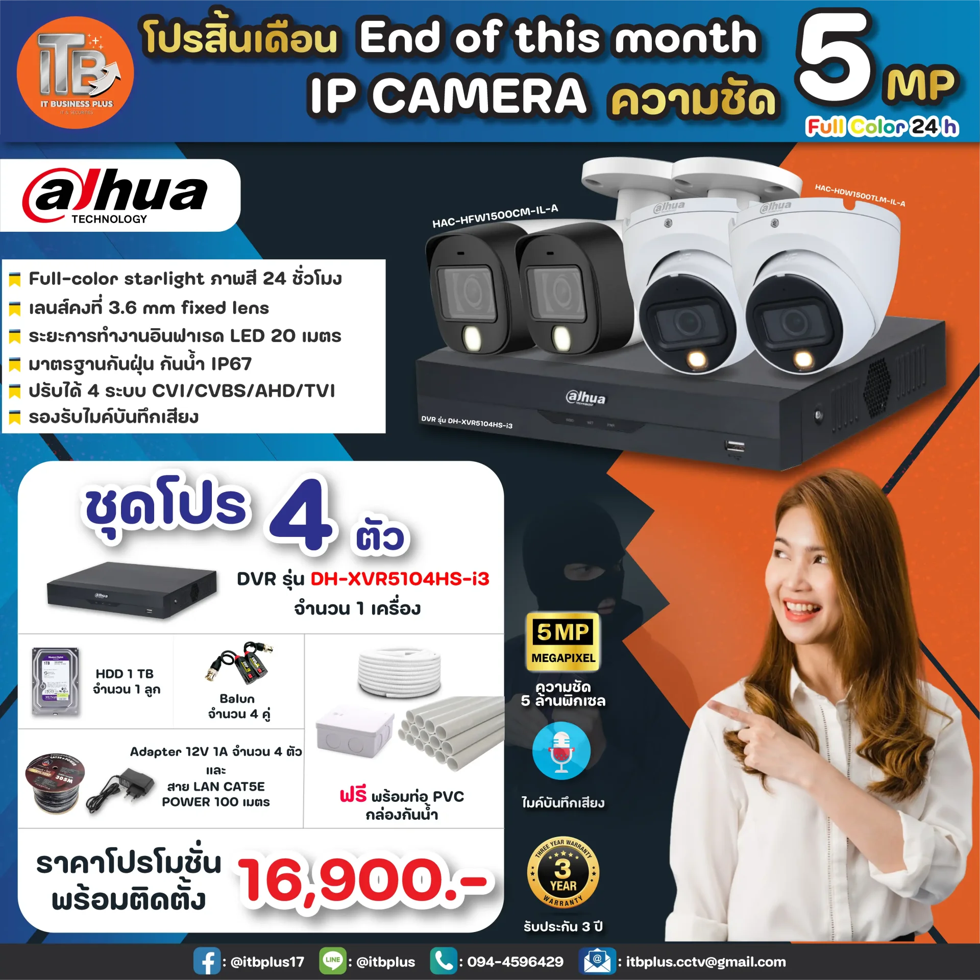กล้องวงจรปิด Dahua ระบบ IP CAMERA ความคมชัด 5 ล้าน พร้อมติดตั้ง เป็นกล้องวงจรปิดคุณภาพสูงที่ให้ภาพคมชัดระดับ 5 ล้านพิกเซล มาพร้อมกับระบบอินฟราเรดที่สามารถมองเห็นได้ในเวลากลางคืนได้อย่างชัดเจน กล้องวงจรปิด Dahua ยังมาพร้อมกับระบบตรวจจับความเคลื่อนไหวและระบบแจ้งเตือนเมื่อมีการบุกรุก นอกจากนี้ยังสามารถบันทึกภาพและเสียงได้อย่างต่อเนื่องตลอด 24 ชั่วโมง