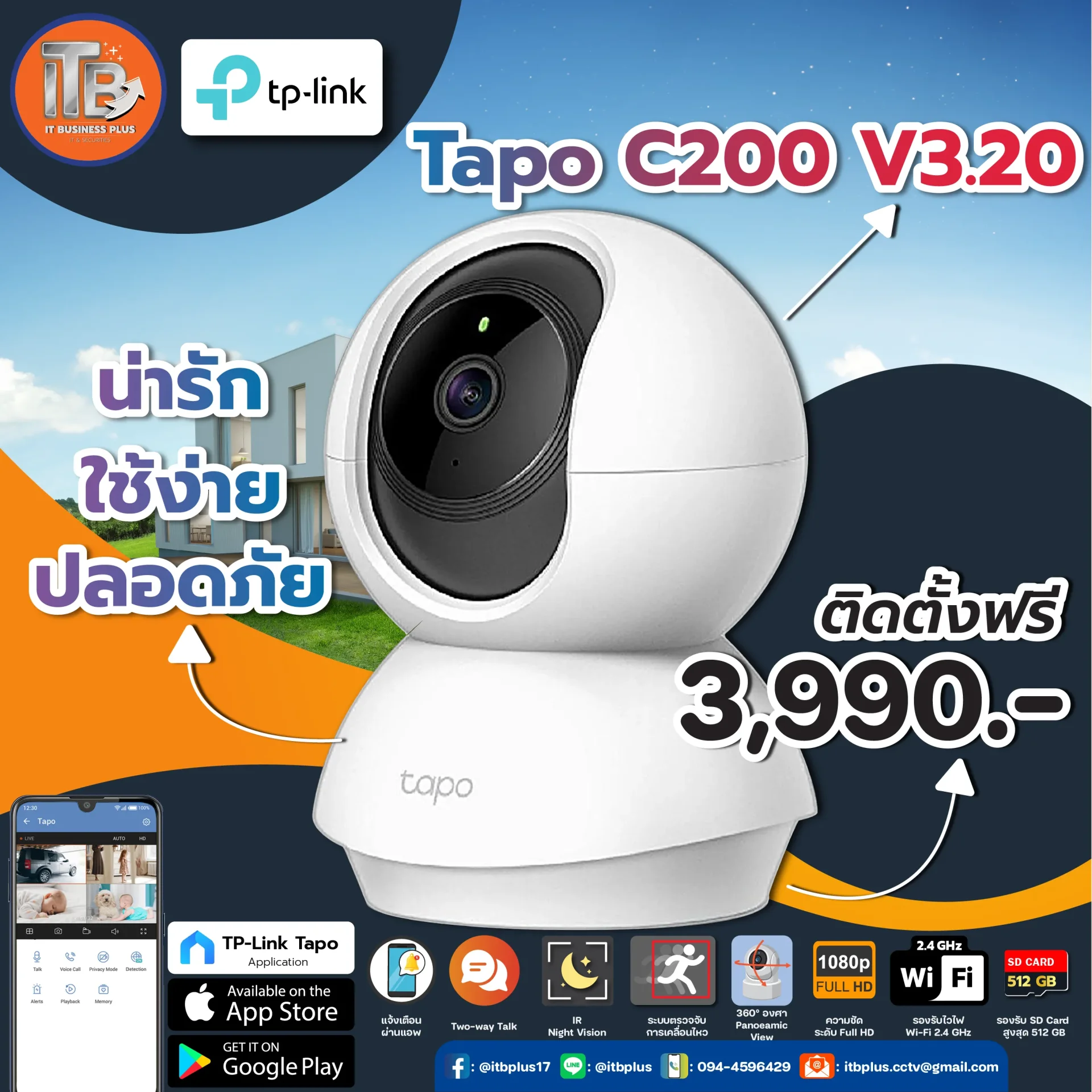 อย่ารอช้า ทำให้ความมั่นใจของคุณมาและเลือก Tapo C200 V3.2 พร้อมช่างติดตั้งไปเลย!