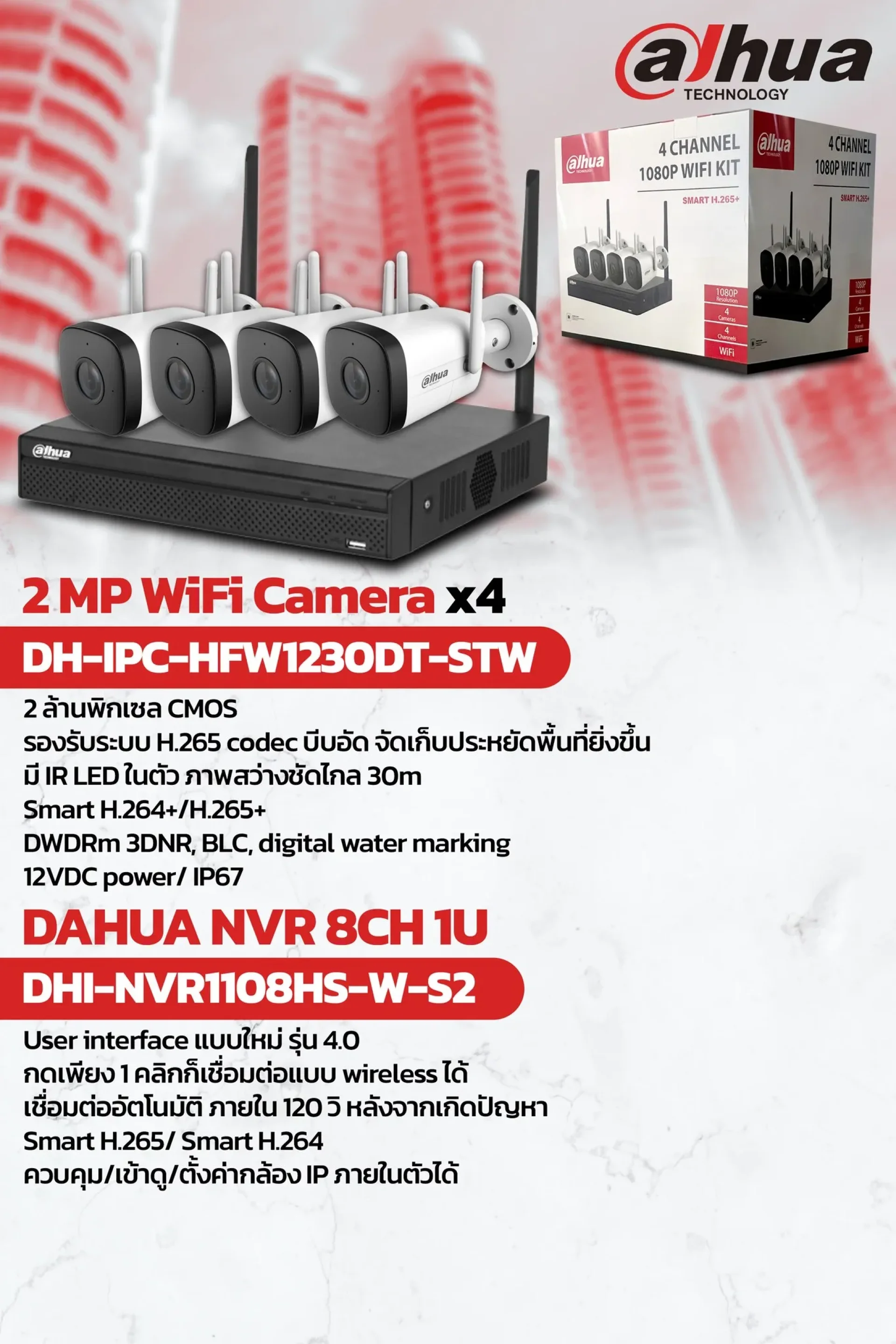 ที่จะช่วยให้คุณมั่นใจในการดูแลความปลอดภัยของที่พักอย่างมาก วันนี้เราก็มีเซ็ตกล้อง DH-WNK-04B08-2MP Set KIT WIFI น้อง Dahua มาแนะนำค่ะ