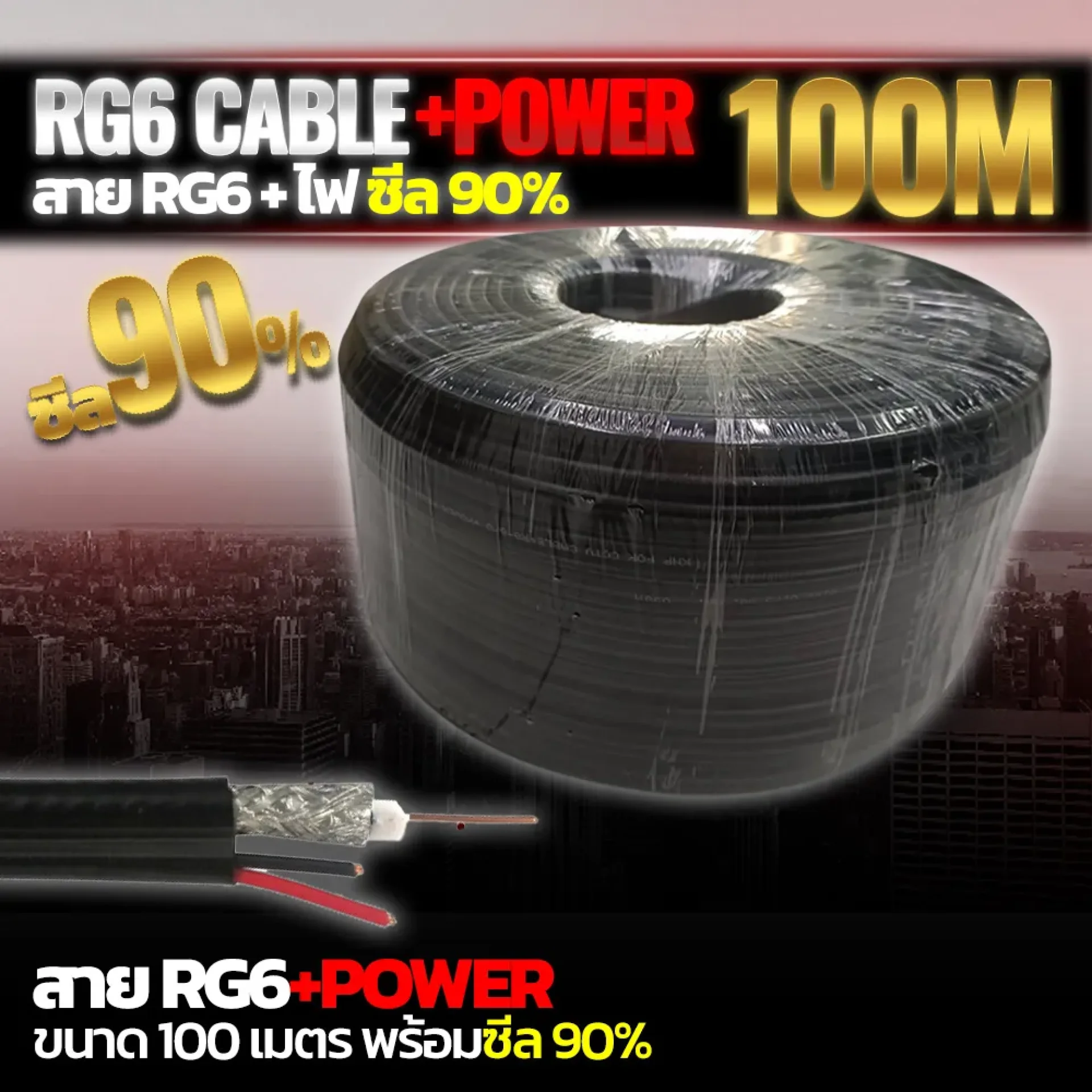 สาย rg6+power 100M ชิล 90% เต็มม้วน โปรดี ราคาถูกมาก!! แค่ 2XX