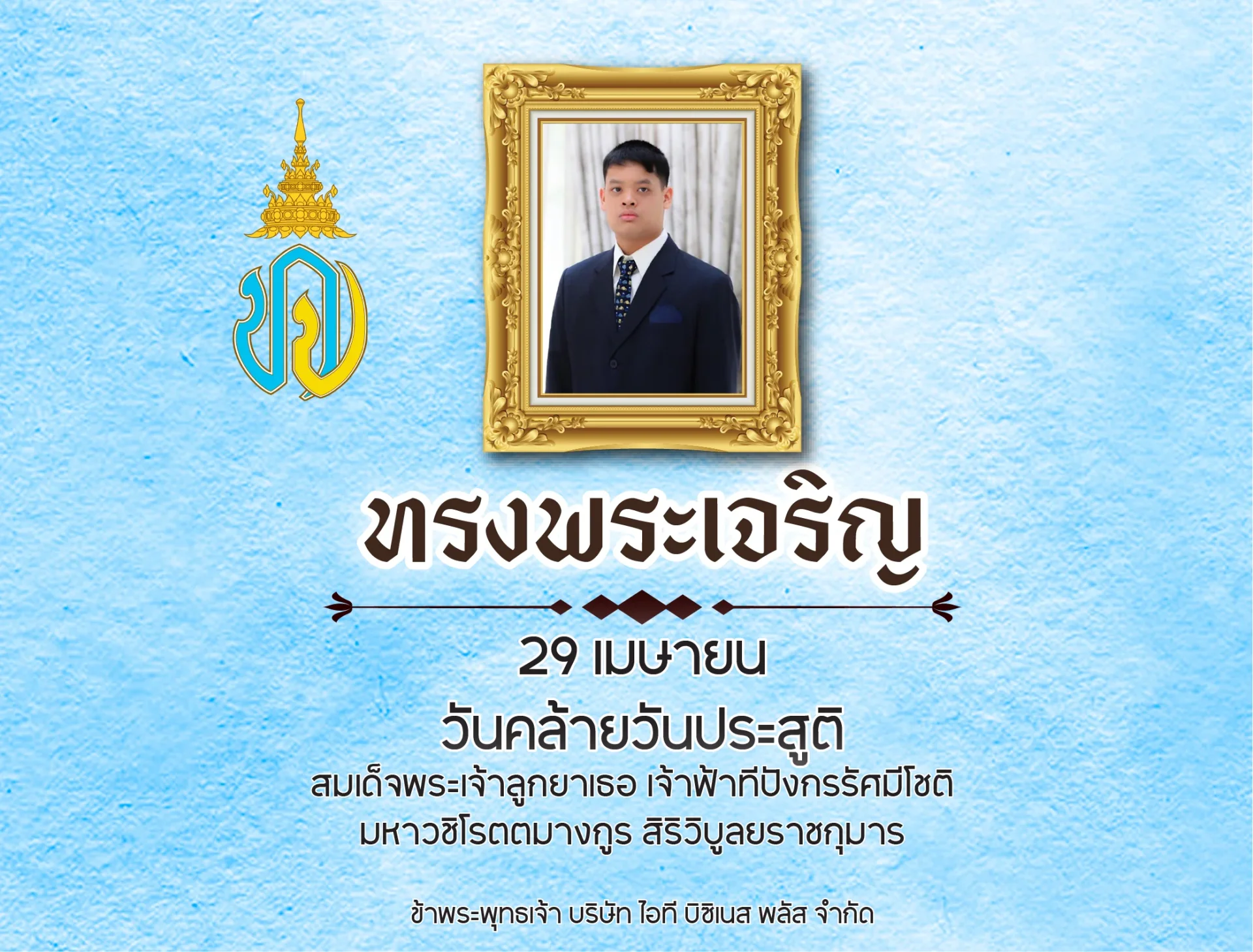 ๒๙ เมษายน วันคล้ายวันประสูติ สมเด็จพระเจ้าลูกยาเธอ เจ้าฟ้าทีปังกรรัศมีโชติ มหาวชิโรตตมางกูร สิริวิบูลยราชกุมาร