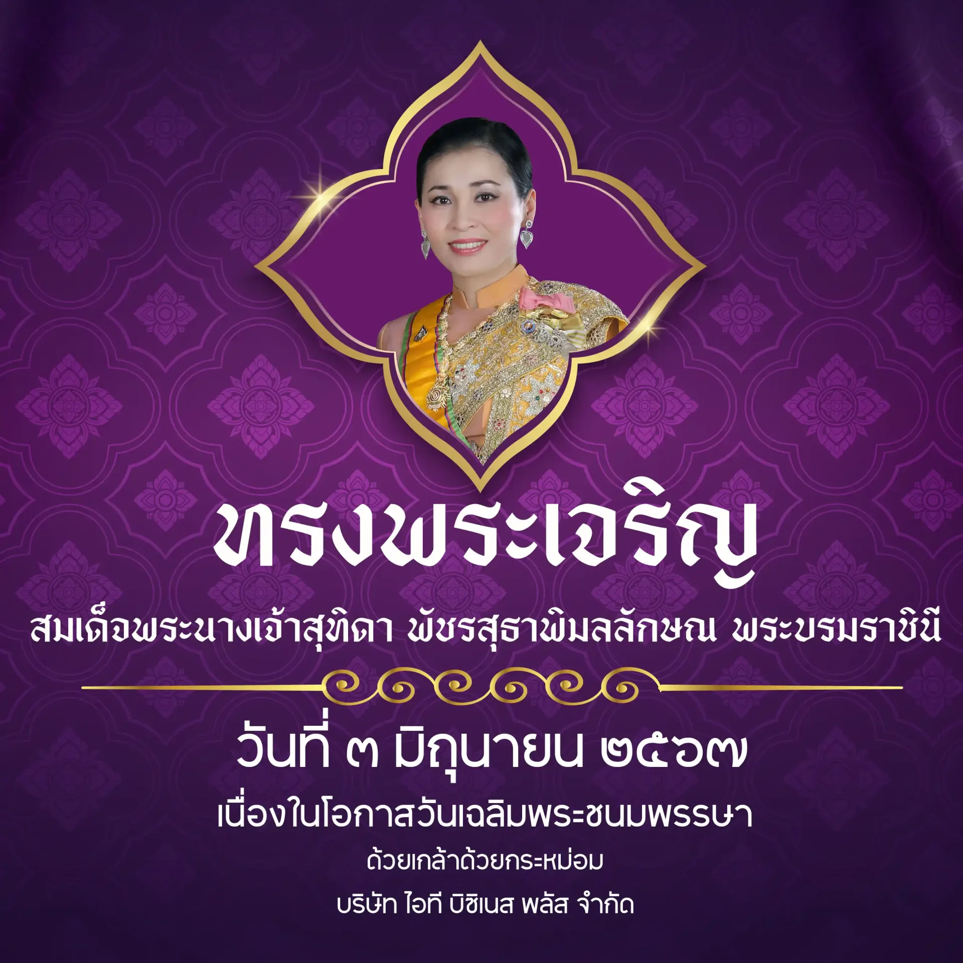 เนื่องในโอกาสวันเฉลิมพระชนมพรรษา สมเด็จพระนางเจ้าสุทิดา พัชรสุธาพิมลลักษณ พระบรมราชินี" วันที่ ๓ มิถุนายน ๒๕๖๗