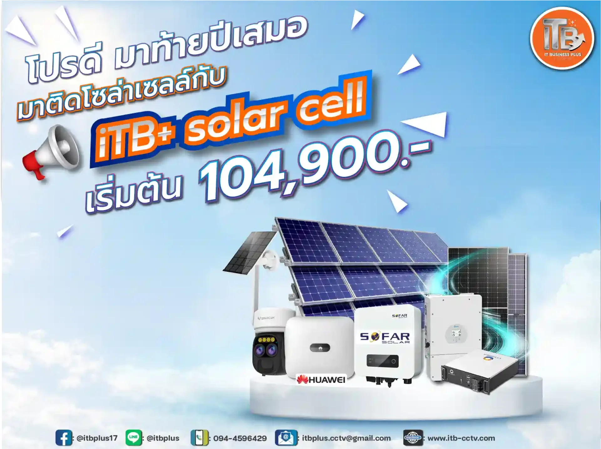 ITb+ เรายินดีให้คำปรึกษา ไม่ว่าจะเป็นเรื่องการเลือกแผงโซลาร์เซลล์ ขนาดที่เหมาะสมกับการใช้งาน หรือการติดตั้งระบบพลังงานแสงอาทิตย์ค่ะ