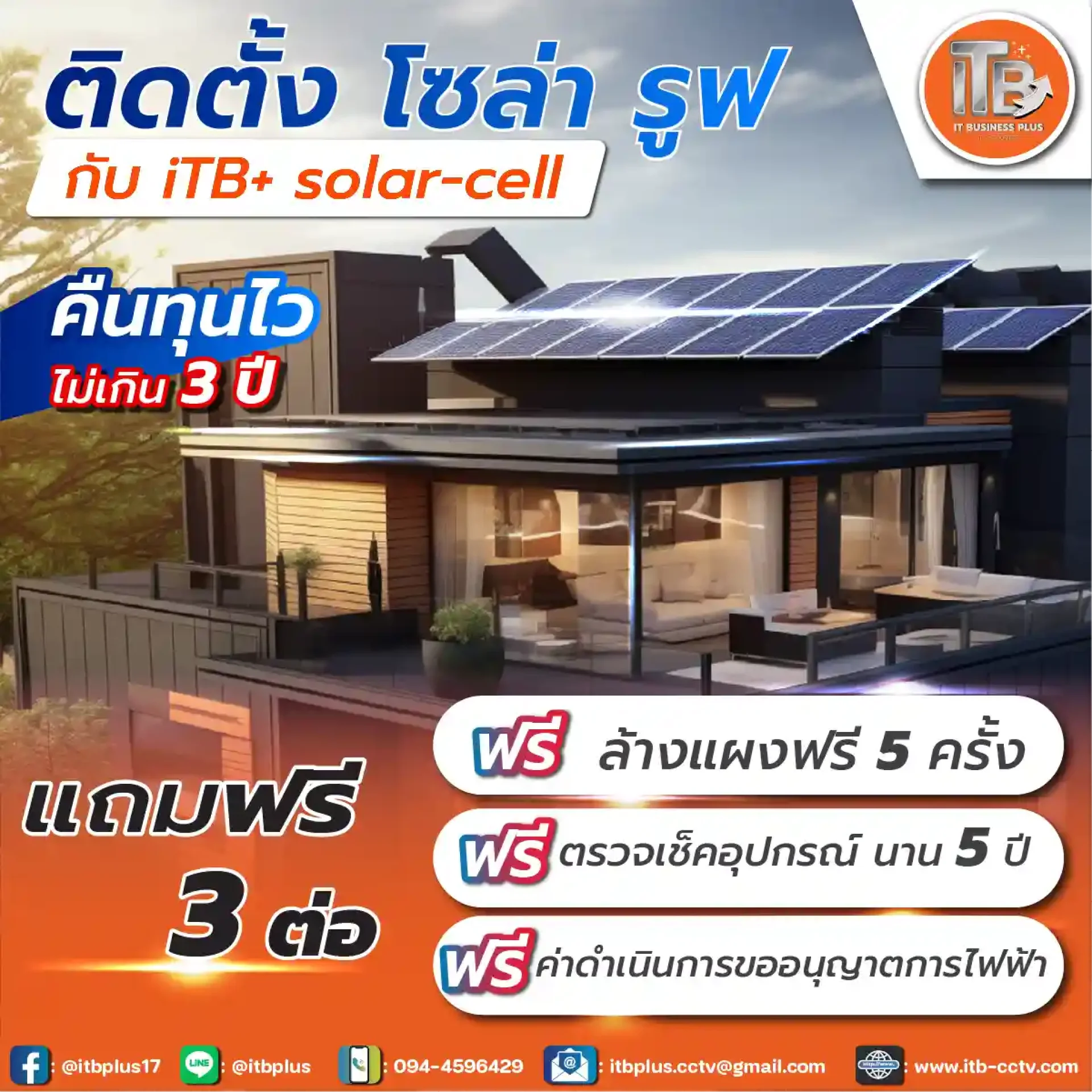 ติดก่อนคุ้มก่อนนะคะ ITb+ เรายินดีให้คำปรึกษา ไม่ว่าจะเป็นเรื่องการเลือกแผงโซลาร์เซลล์ ขนาดที่เหมาะสมกับการใช้งาน หรือการติดตั้งระบบพลังงานแสงอาทิตย์ค่ะ