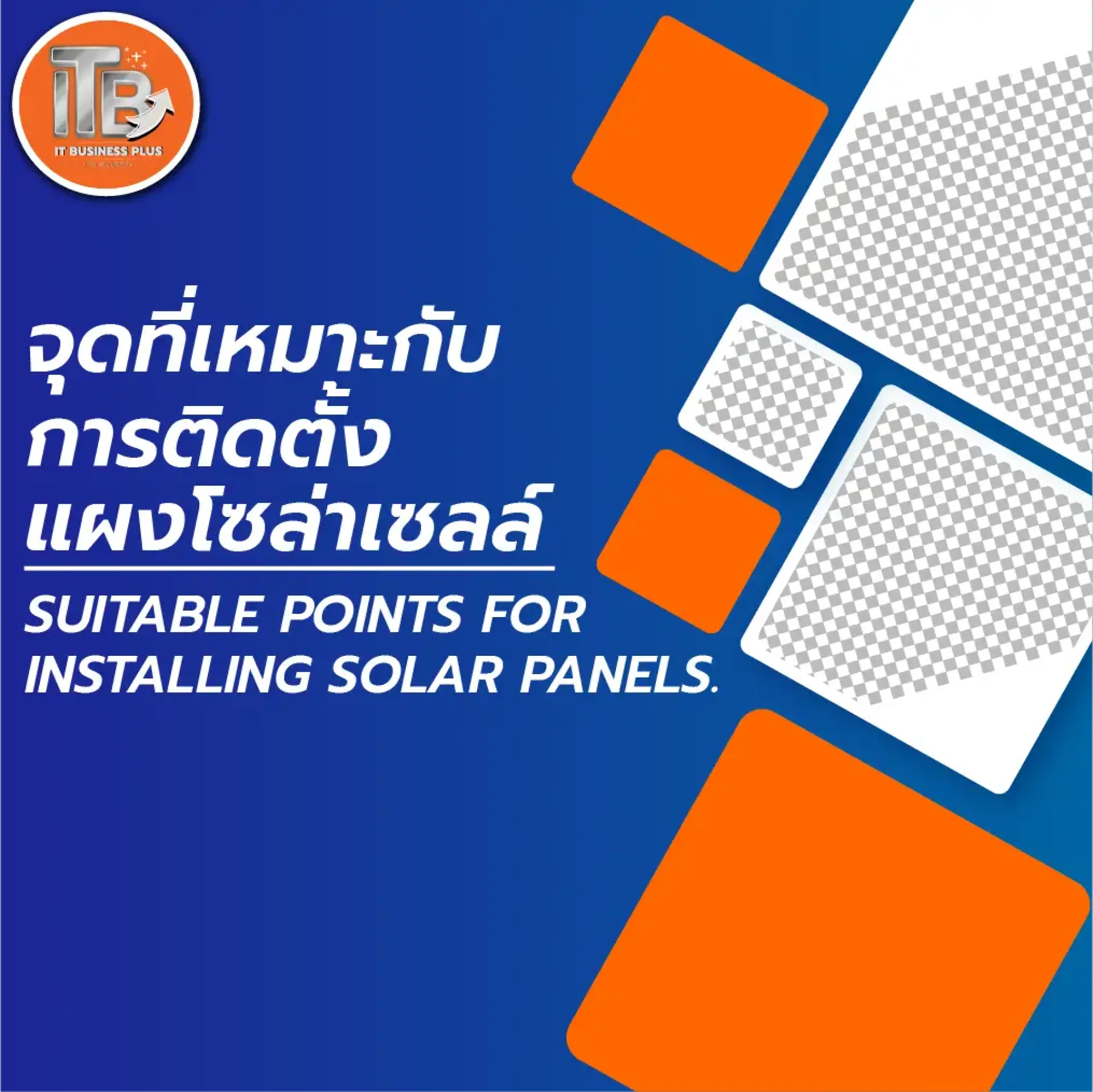 ITb+ เรายินดีให้คำปรึกษา ไม่ว่าจะเป็นเรื่องการเลือกแผงโซลาร์เซลล์ ขนาดที่เหมาะสมกับการใช้งาน หรือการติดตั้งระบบพลังงานแสงอาทิตย์ค่ะ