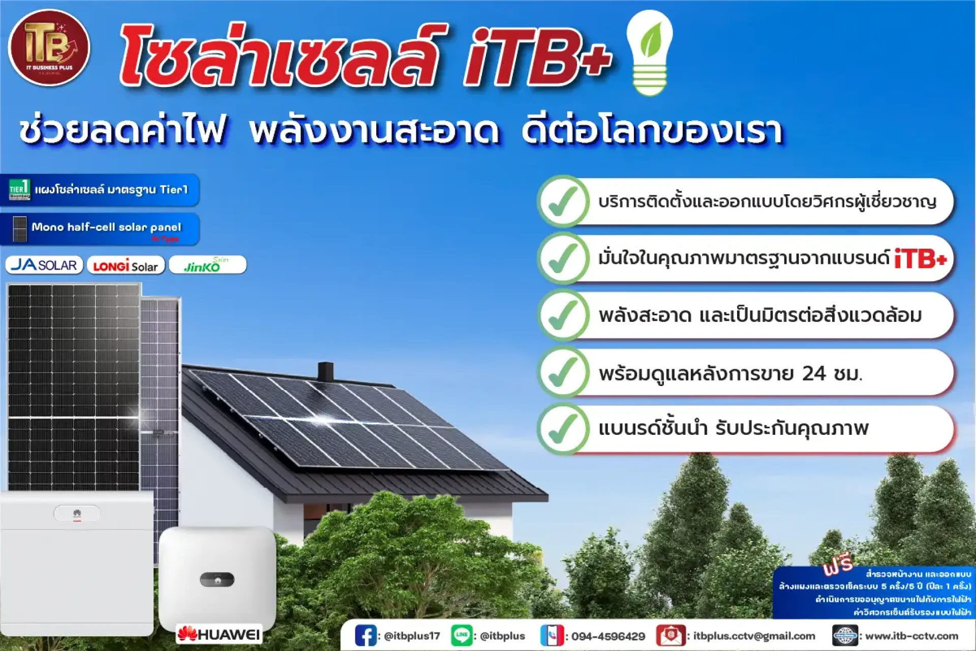 ITb+ เรายินดีให้คำปรึกษา ไม่ว่าจะเป็นเรื่องการเลือกแผงโซลาร์เซลล์ ขนาดที่เหมาะสมกับการใช้งาน หรือการติดตั้งระบบพลังงานแสงอาทิตย์ค่ะ
