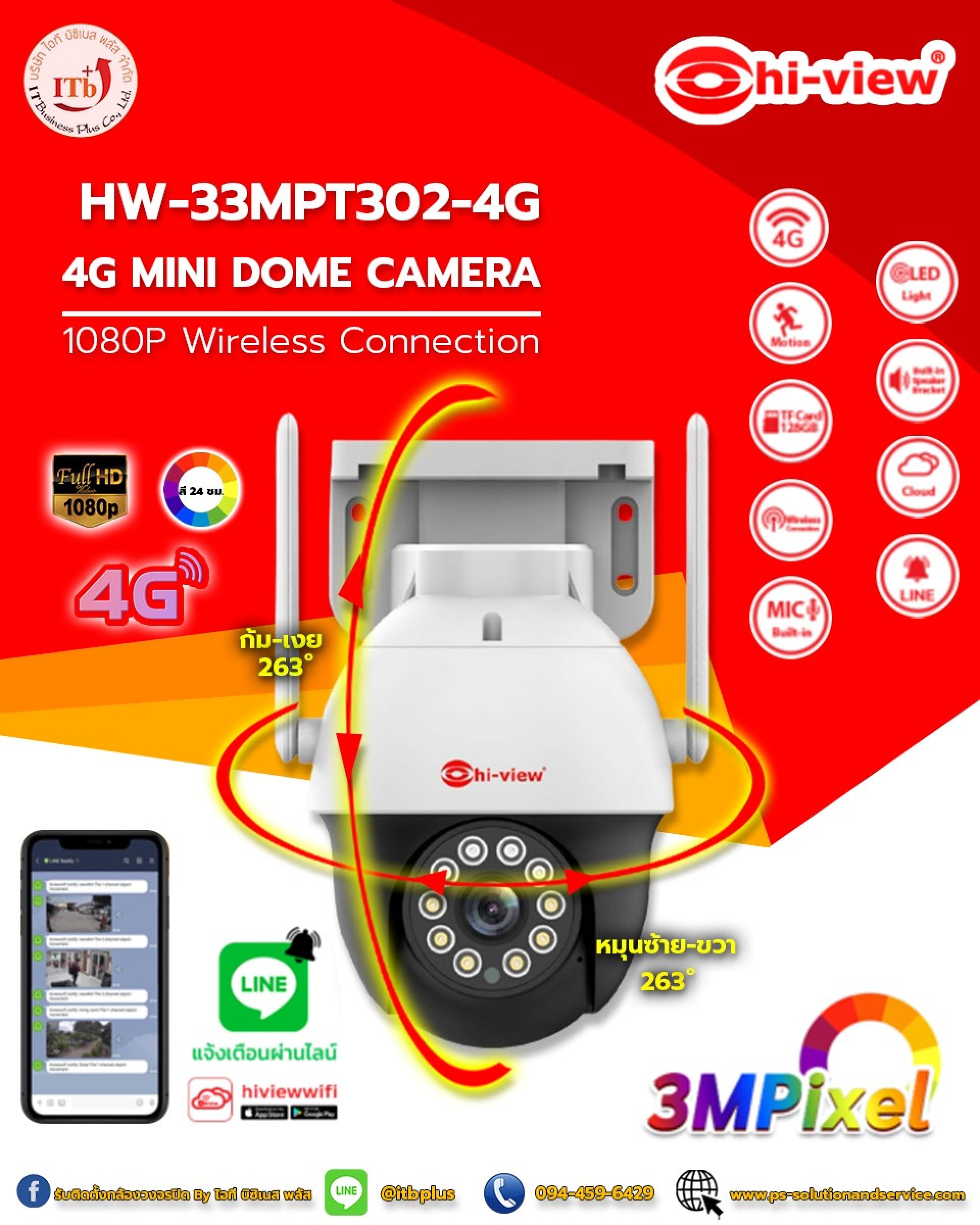 กล้องวงจรปิดไร้สาย ใส่ซิมม4G Hiview รุ่น HW-33MPT302-4G