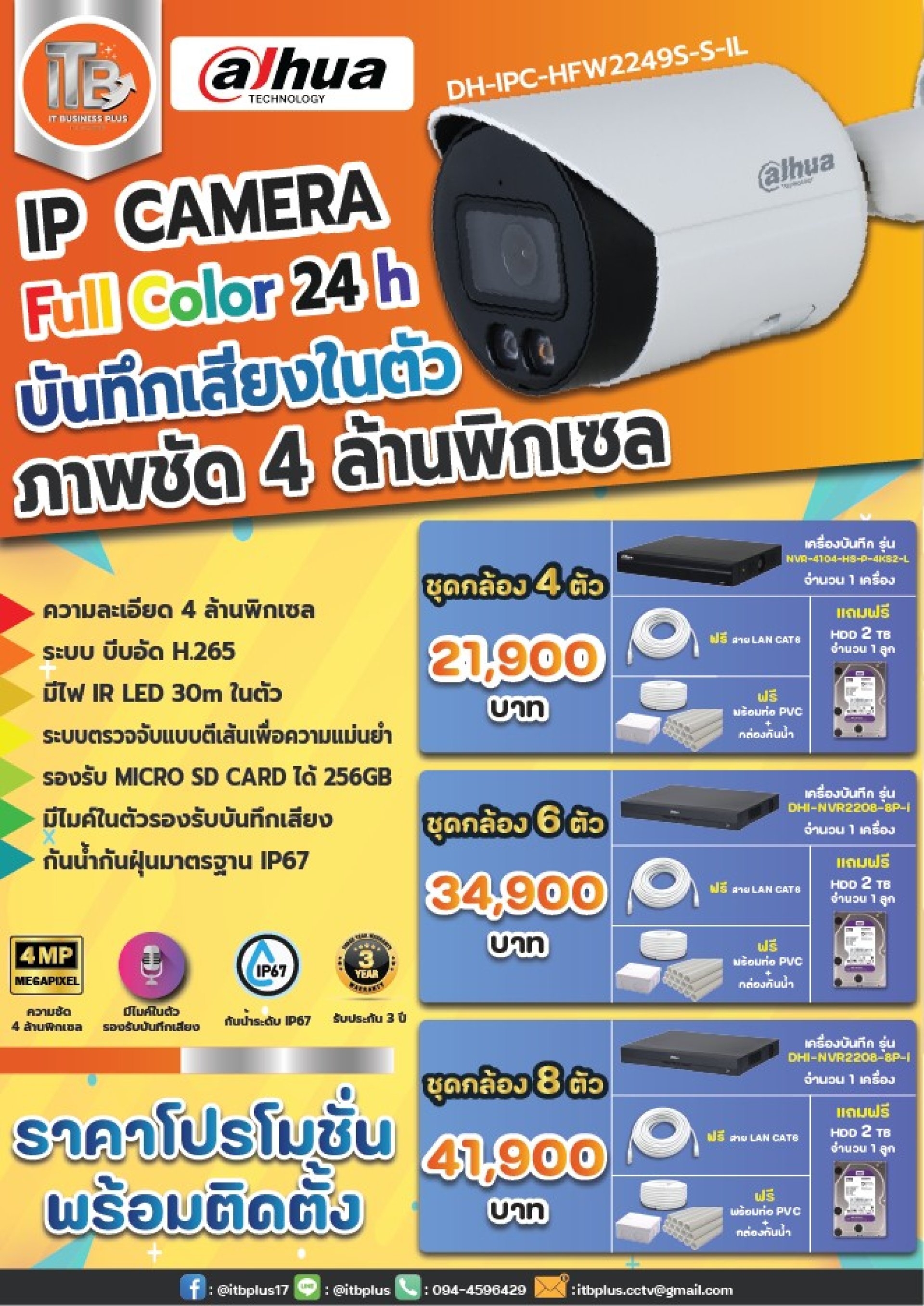 โปรโมชั่นกล้องวงจรปิด แบรนด์ Dahua พร้อมติดตั้ง ระบบ IP CAMERA